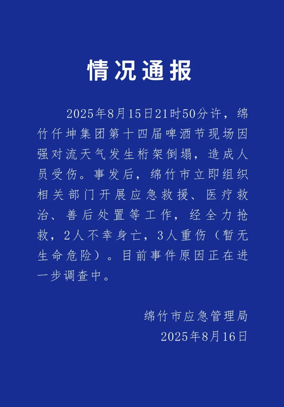 What was meant to be a lively celebration on August 15th quickly turned into a heartbreaking tragedy at the 14th Mianzhu Qiankun Group Beer Festival. Around 9:50 PM, a severe convective weather event caused a truss to collapse amid the crowd, sending shockwaves through Mianzhu City and beyond. 😔 The festival atmosphere instantly shifted from cheers to chaos.