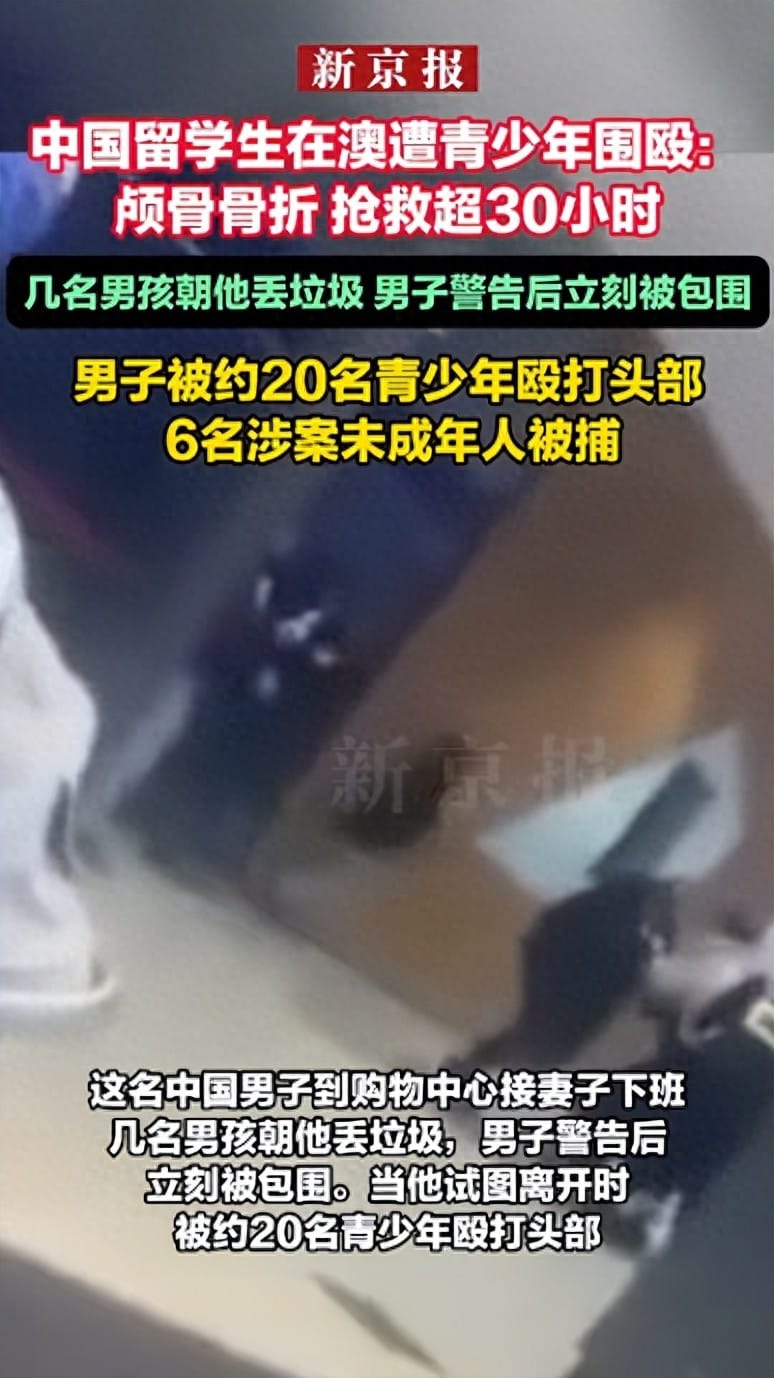 On August 6th, a disturbing incident occurred in Hobart, Tasmania, where a 33-year-old Chinese student was brutally attacked by a group of minors. This shocking event, which involved a group assault at a shopping center, left the man with serious injuries including cerebral hemorrhage, concussion, and fractured skull among others. The incident quickly gained widespread attention when footage of the attack surfaced online, raising urgent questions about community safety and the vulnerability of foreign nationals in Australia.