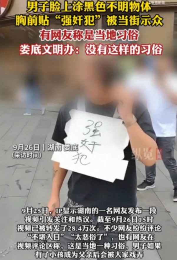 In what should have been a joyful occasion celebrating a child's first birthday, a man in Hunan, China, was instead subjected to a disturbingly cruel prank that has since ignited widespread outrage. 📹 Footage shared online shows the man standing in a busy public square outside a shopping mall in Lianyuan city with his face blackened and a sign hung around his neck that read "rapist."