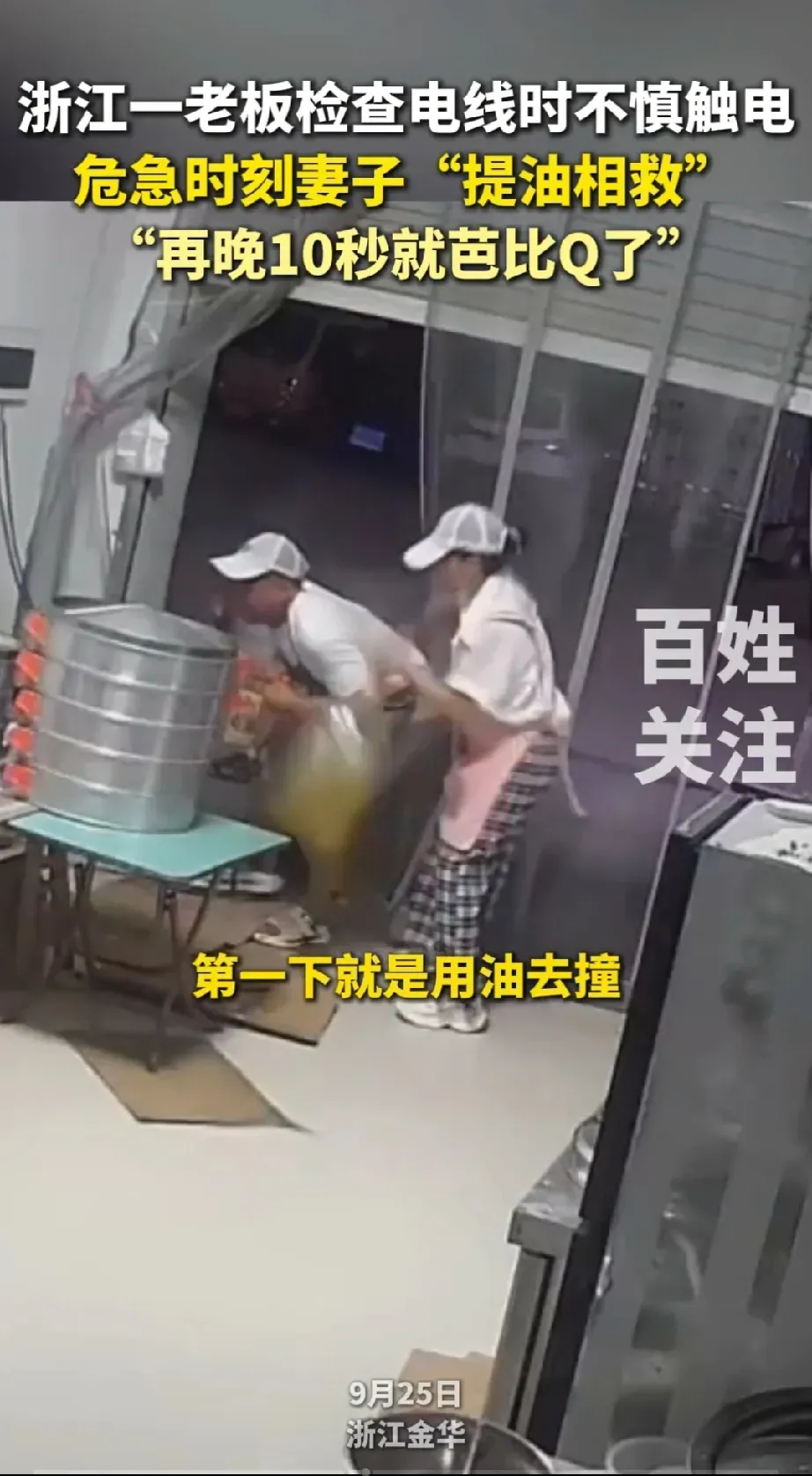 What can we learn from this harrowing incident? First, **quick reflexes and calm thinking save lives** in emergencies. Mrs. Zhao’s decision to use the oil bucket as an insulator rather than grabbing a metal object or rushing in blindly was critical.