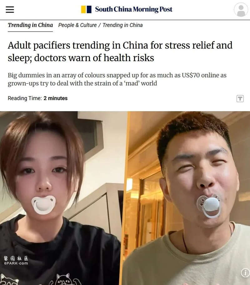 Whether these claims hold water is another story. Many users find that the simple action of sucking can provide a soothing effect — some reviews say things like "I was going crazy from insomnia, I can only rely on this" or "When I bite it, I don't have to think about anything." Others are less impressed, calling them "a fool's tax" after the pacifier broke in their mouth or never really worked to relieve stress.